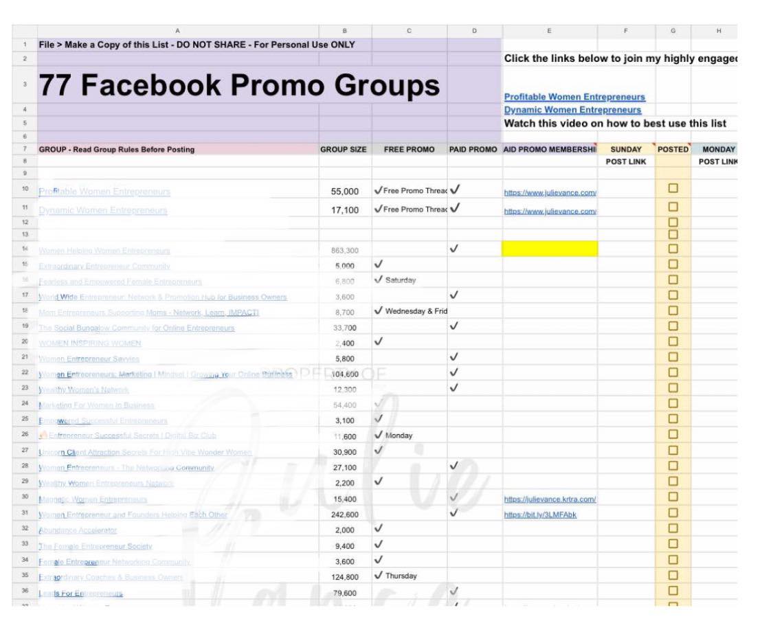A: I am including a list of the exact groups that I post in. I’ve done the research so you don’t have to.