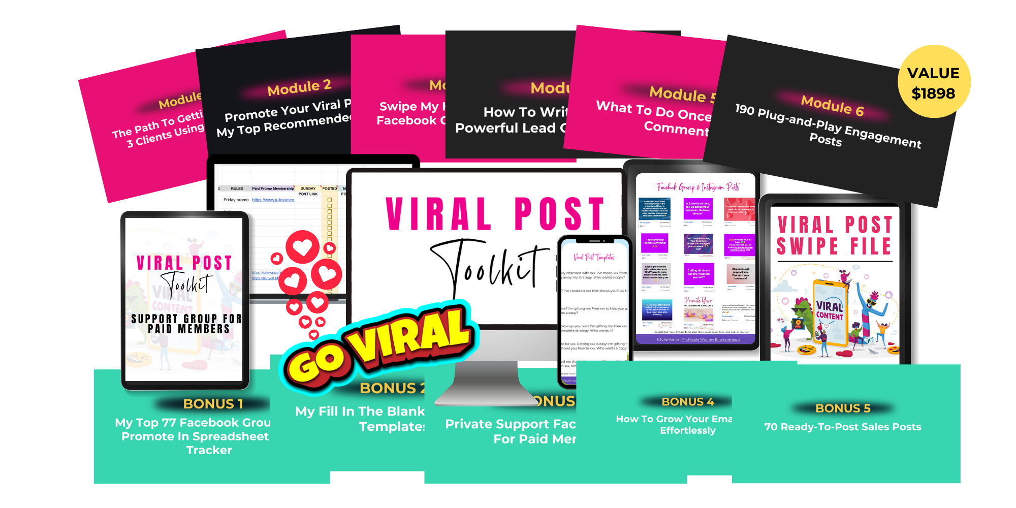 You can ask for a refund for the Viral Post Toolkit™ at any time within 30 days and you’ll get a no questions asked full refund to the original payment method. That’s how confident I am that you will generate leads and that this strategy will work for you too.